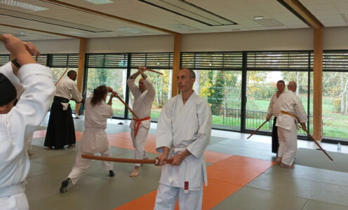 Le stage du 16 novembre 2025, dirigé par Jérôme Andries, s’est déroulé sous un beau soleil qui a offert une ambiance agréable dès l’accueil. La matinée a été marquée par une pratique sérieuse mais détendue, avec de nombreuses techniques, dont certaines moins courantes, qui ont suscité beaucoup d’intérêt.