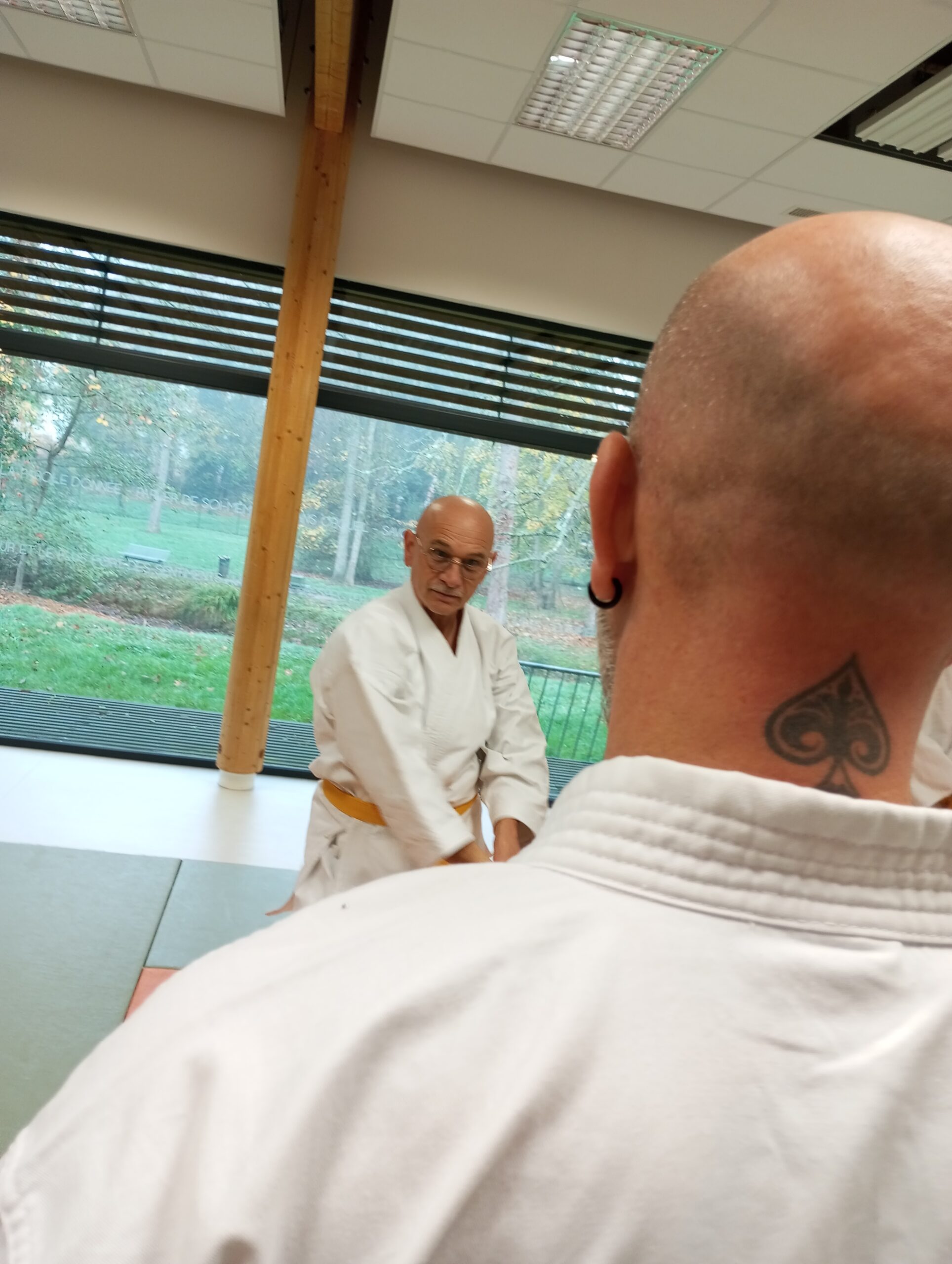 Le stage du 16 novembre 2025, dirigé par Jérôme Andries, s’est déroulé sous un beau soleil qui a offert une ambiance agréable dès l’accueil. La matinée a été marquée par une pratique sérieuse mais détendue, avec de nombreuses techniques, dont certaines moins courantes, qui ont suscité beaucoup d’intérêt.